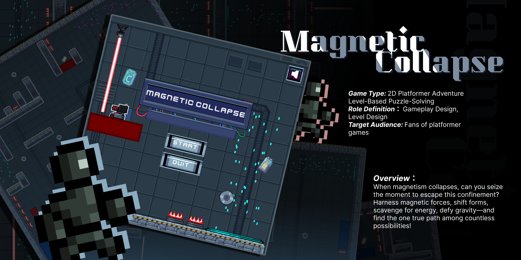 When magnetism collapses, can you seize the moment to escape this confinement? Harness magnetic forces, shift forms, scavenge for energy, defy gravity—and find the one true path among countless possibilities!
